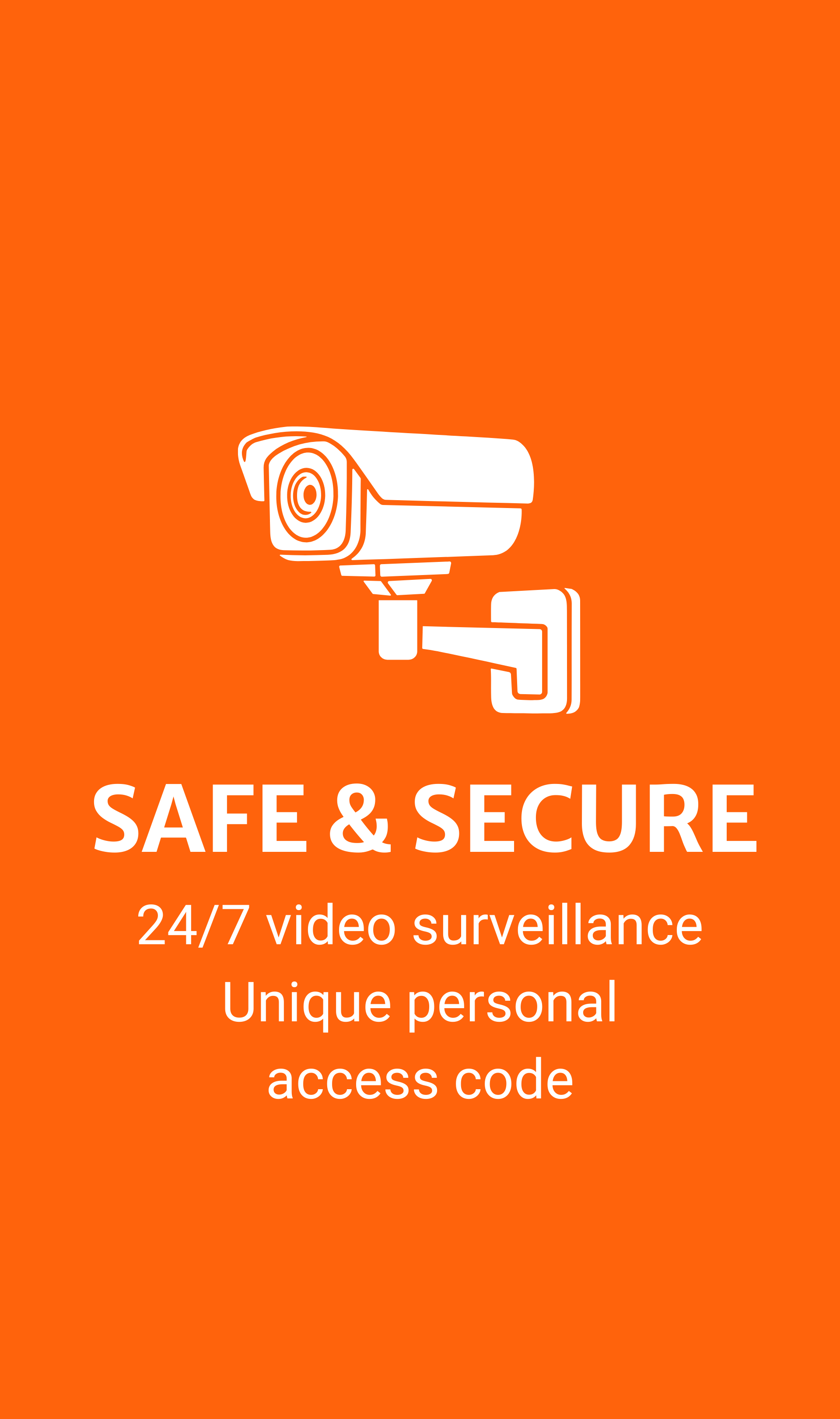 The premises are equipped with security cameras that record continuously. Access to the building and lockers is only possible with a valid personal numeric code or QR code.